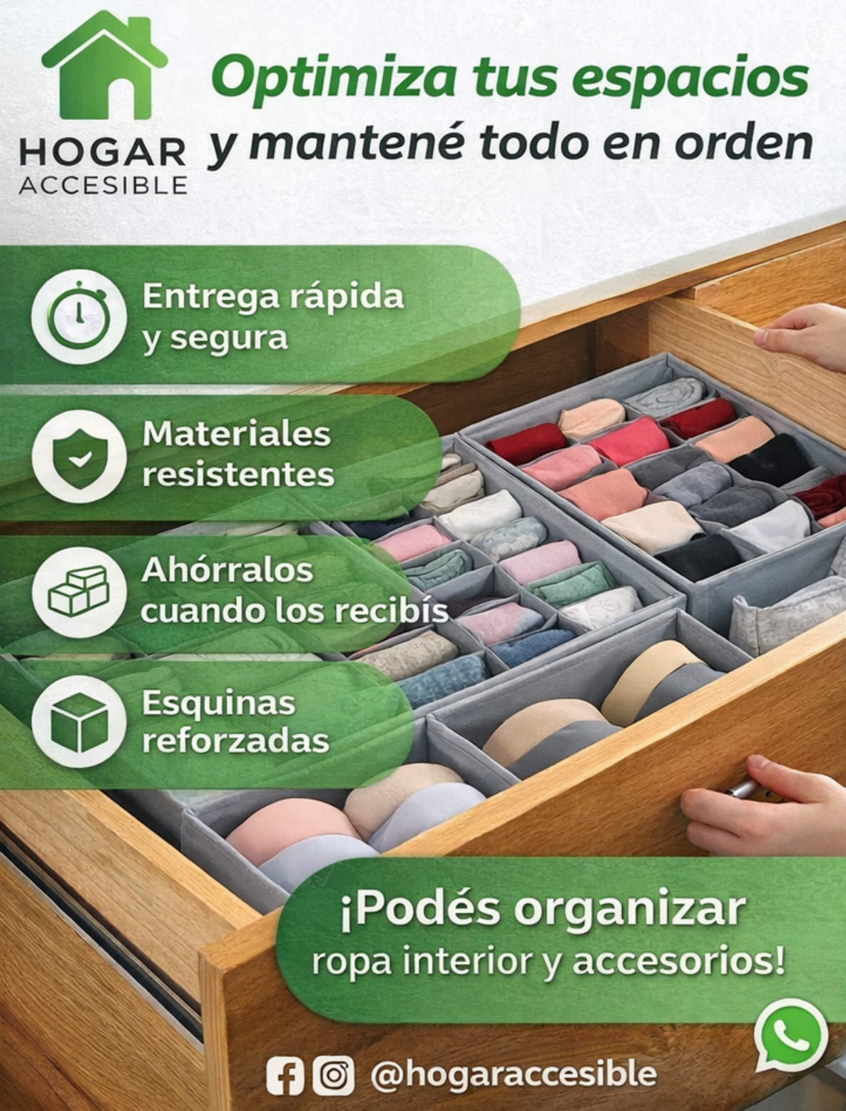 Si cada mañana perdés tiempo buscando medias, ropa interior o remeras, este organizador es para vos. El Organizador de ropa Premium convierte cualquier cajón desordenado en un espacio funcional y prolijo. Más orden, más espacio y más tranquilidad todos los días.